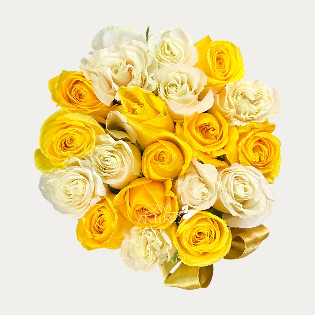 Arreglo Circular de Rosas Amarillas y Blancas