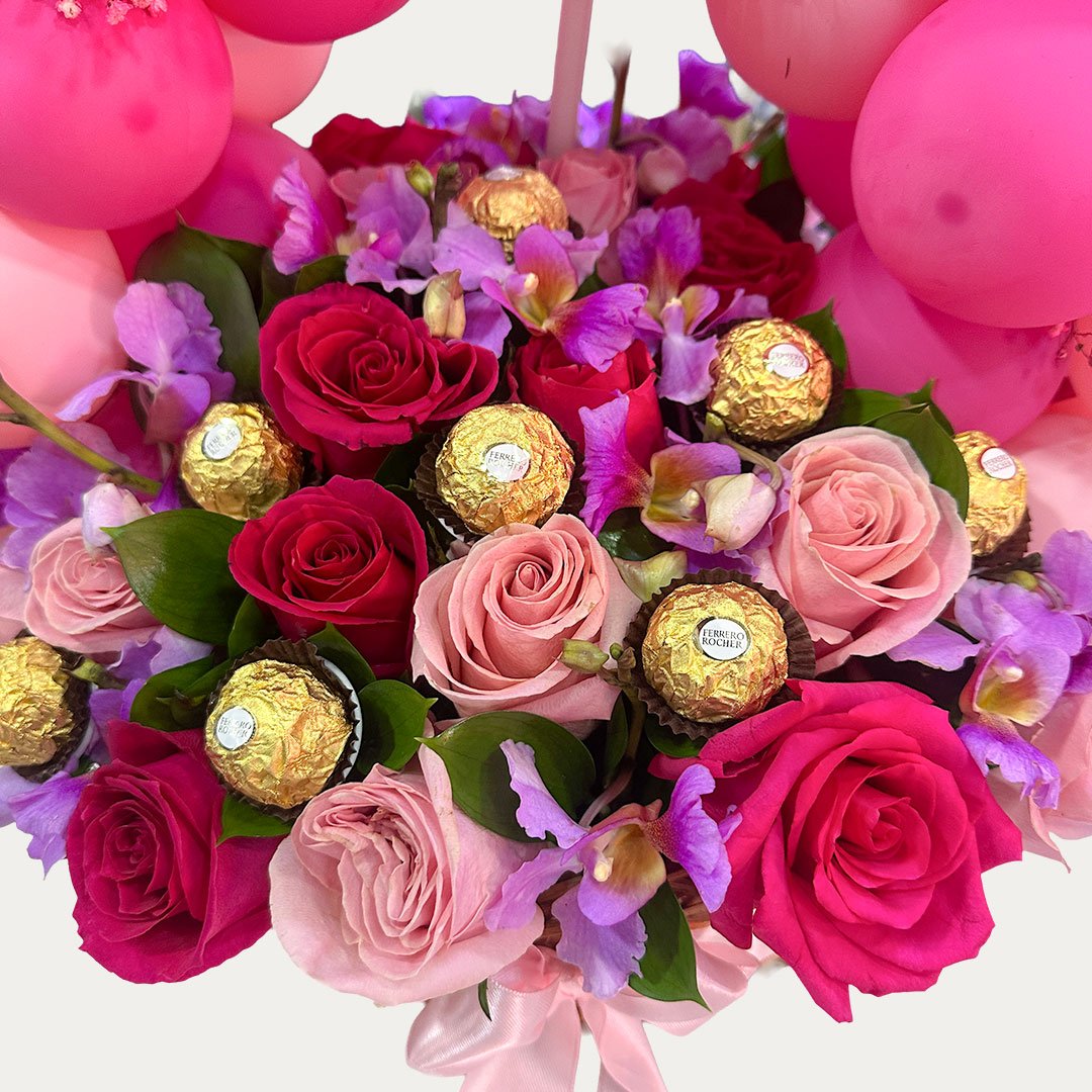 Cada arreglo puede personalizarse de acuerdo a tus preferencias. Si deseas añadir chocolates o globos, puedes seleccionarlos para comprar en la parte inferior de la descripción del producto. Si deseas modificar algún tipo de flor, puedes indicarlo en el campo de observaciones al finalizar tu compra. Nuestro equipo estará encantado de crear un detalle único y especial para ti o para esa persona que quieres sorprender.