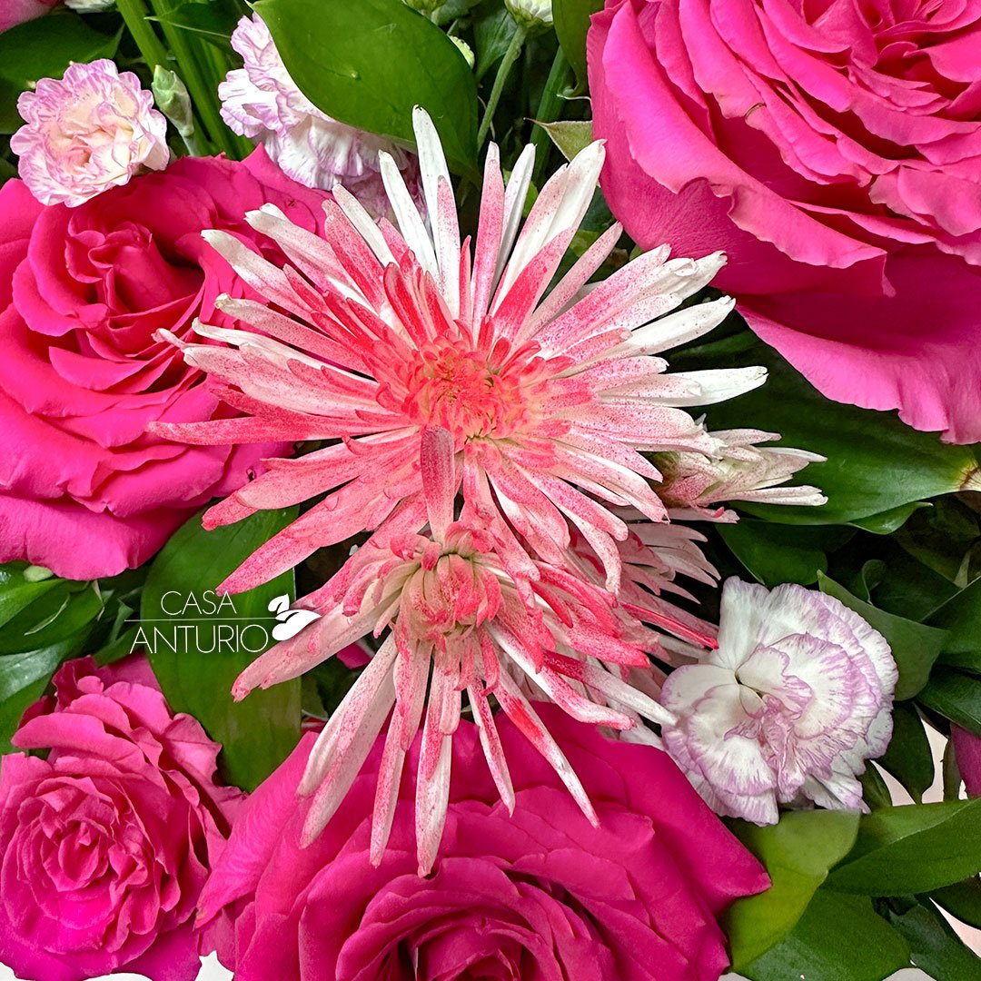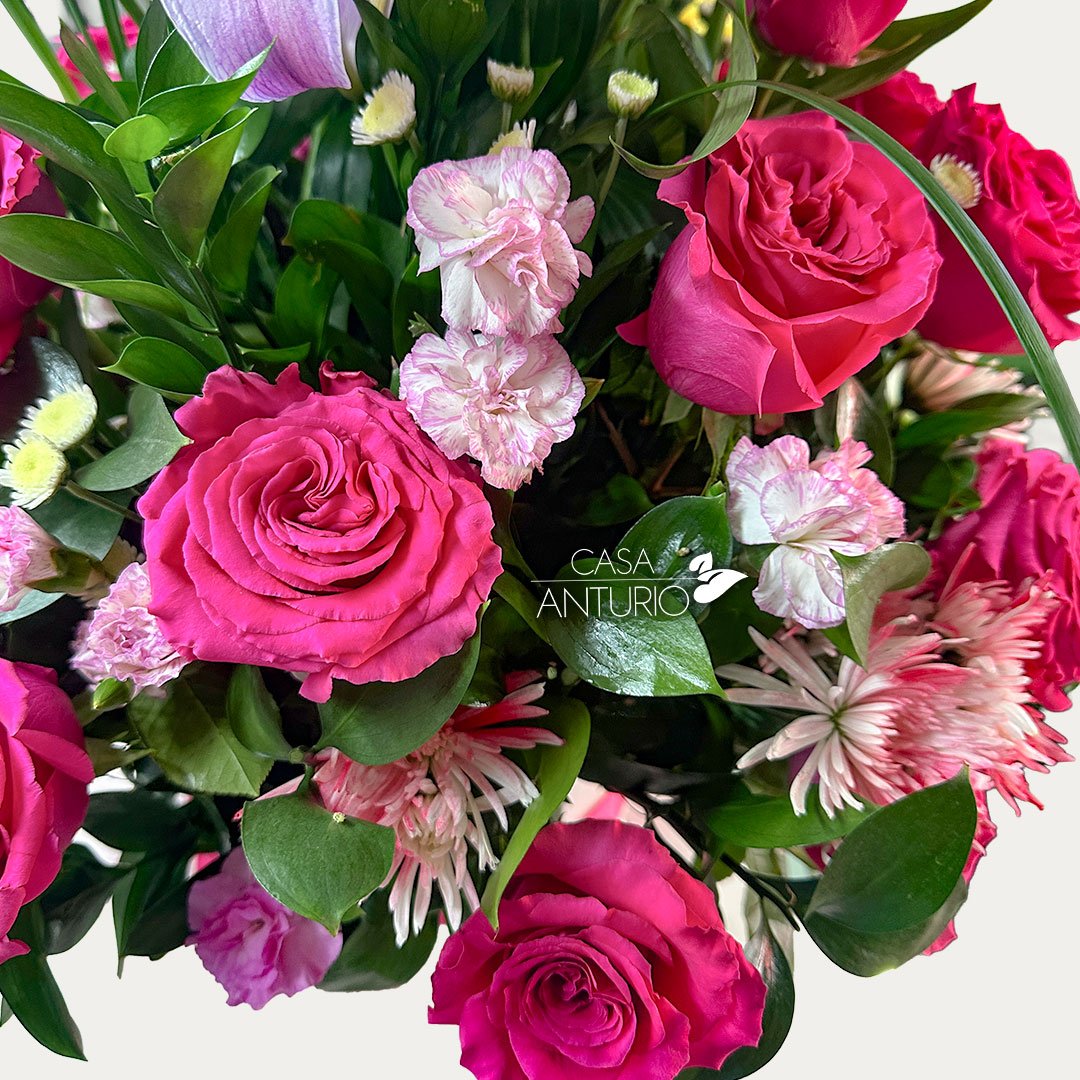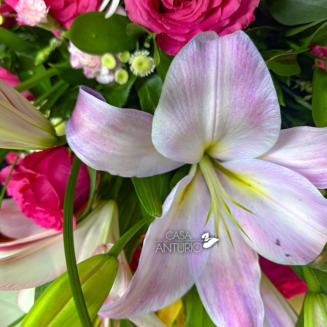 Nota importante: En Casa Anturio trabajamos con flores 100% naturales, cuidadosamente seleccionadas para garantizar frescura y calidad en cada arreglo. Debido a su origen natural, es posible que presenten ligeras variaciones en color, tamaño o forma. Por lo tanto, el producto final puede diferir sutilmente de la imagen de referencia. Sin embargo, te aseguramos que siempre mantendremos la armonía, el estilo y la belleza que caracterizan a nuestros diseños florales.