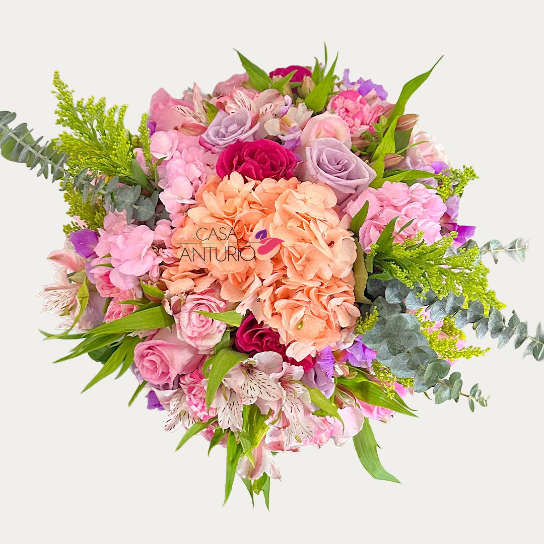 Nota importante: En Casa Anturio trabajamos con flores 100% naturales, cuidadosamente seleccionadas para garantizar frescura y calidad en cada arreglo. Debido a su origen natural, es posible que presenten ligeras variaciones en color, tamaño o forma. Por lo tanto, el producto final puede diferir sutilmente de la imagen de referencia. Sin embargo, te aseguramos que siempre mantendremos la armonía, el estilo y la belleza que caracterizan a nuestros diseños florales.