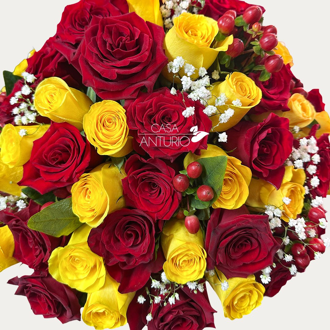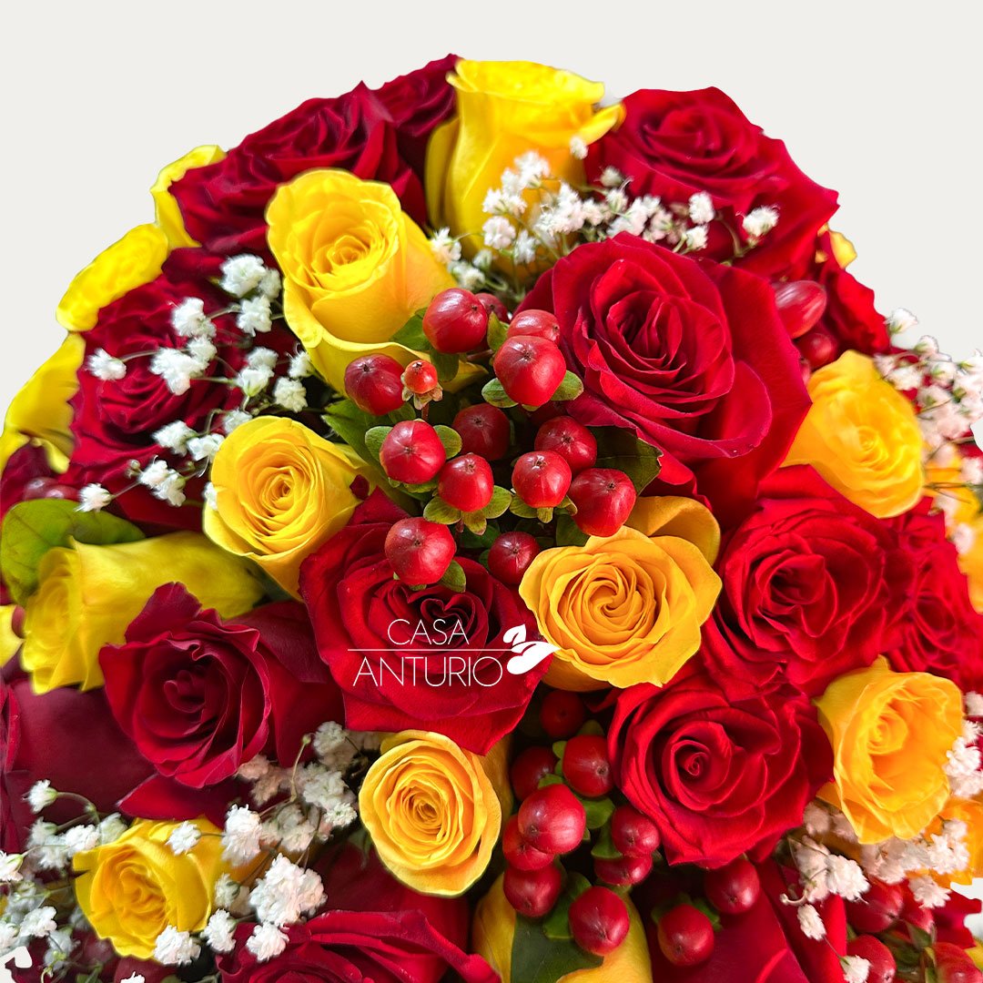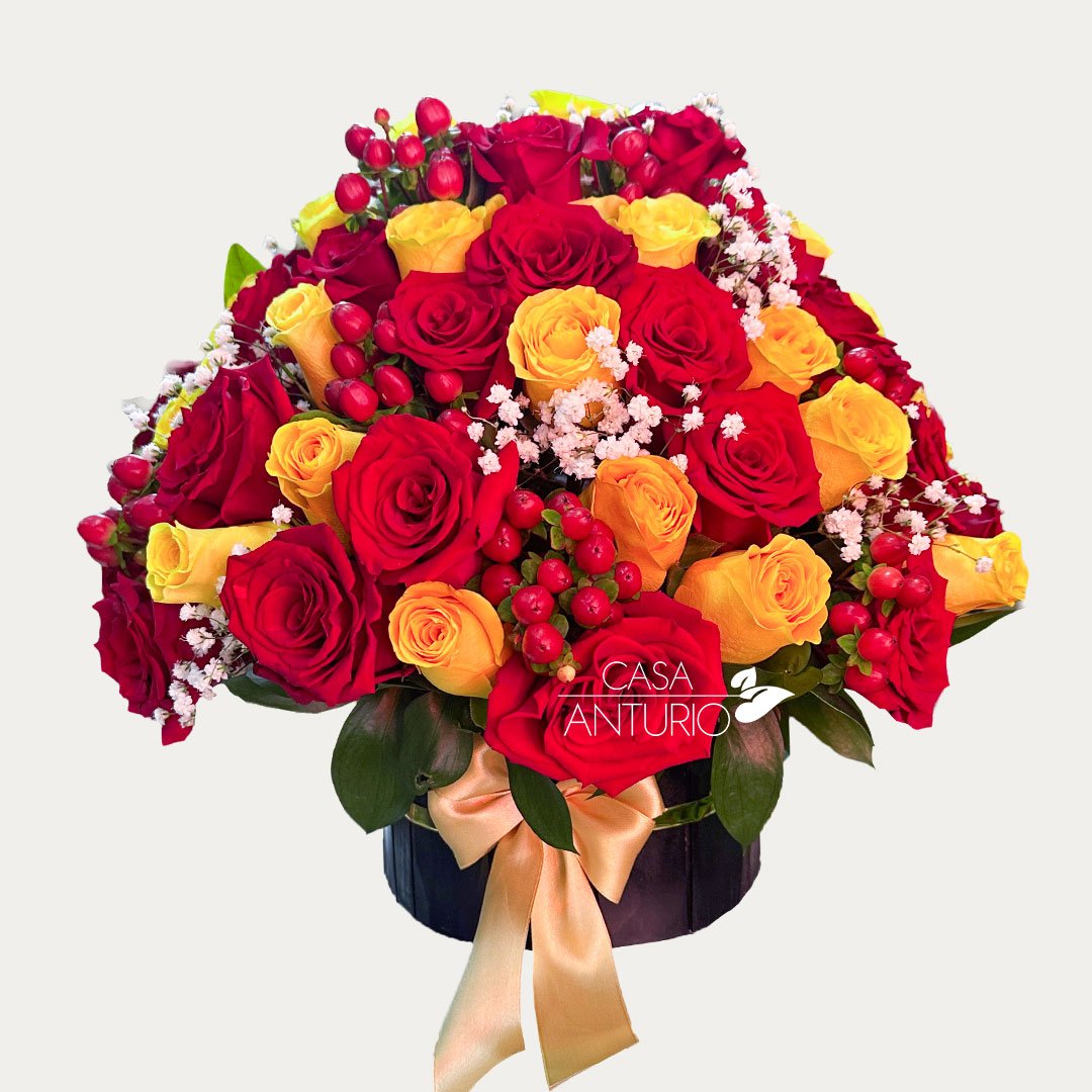 Nota importante: En Casa Anturio trabajamos con flores 100% naturales, cuidadosamente seleccionadas para garantizar frescura y calidad en cada arreglo. Debido a su origen natural, es posible que presenten ligeras variaciones en color, tamaño o forma. Por lo tanto, el producto final puede diferir sutilmente de la imagen de referencia. Sin embargo, te aseguramos que siempre mantendremos la armonía, el estilo y la belleza que caracterizan a nuestros diseños florales.