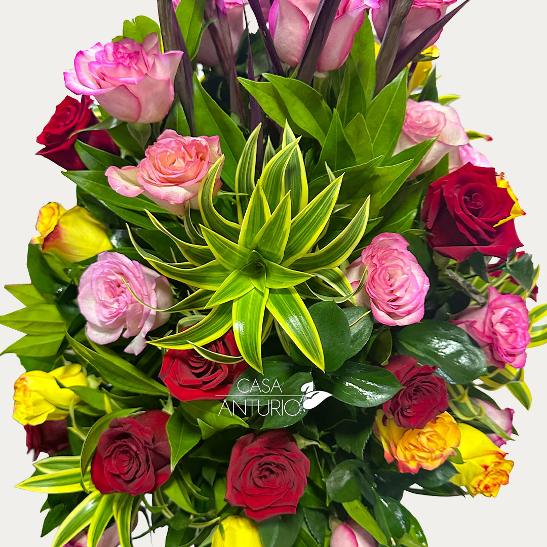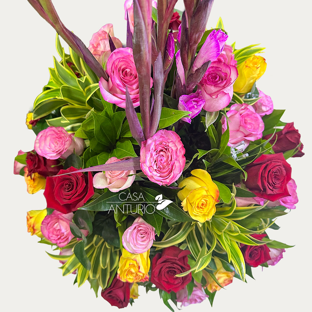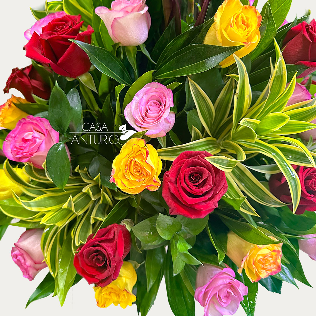Nota importante: En Casa Anturio trabajamos con flores 100% naturales, cuidadosamente seleccionadas para garantizar frescura y calidad en cada arreglo. Debido a su origen natural, es posible que presenten ligeras variaciones en color, tamaño o forma. Por lo tanto, el producto final puede diferir sutilmente de la imagen de referencia. Sin embargo, te aseguramos que siempre mantendremos la armonía, el estilo y la belleza que caracterizan a nuestros diseños florales.