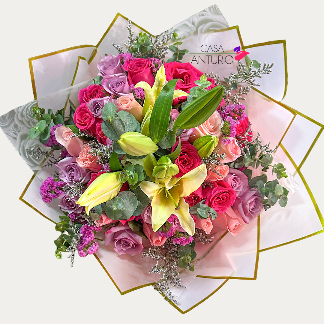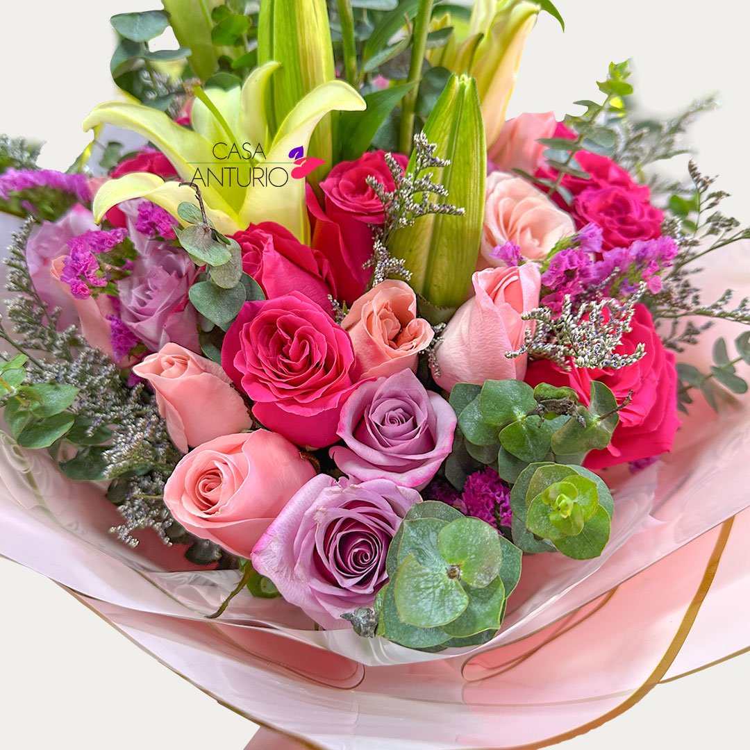 Nota importante: En Casa Anturio trabajamos con flores 100% naturales, cuidadosamente seleccionadas para garantizar frescura y calidad en cada arreglo. Debido a su origen natural, es posible que presenten ligeras variaciones en color, tamaño o forma. Por lo tanto, el producto final puede diferir sutilmente de la imagen de referencia. Sin embargo, te aseguramos que siempre mantendremos la armonía, el estilo y la belleza que caracterizan a nuestros diseños florales.
