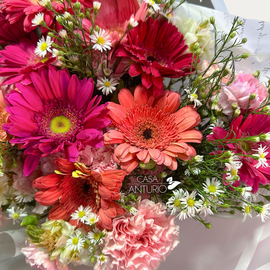 Nota importante: En Casa Anturio trabajamos con flores 100% naturales, cuidadosamente seleccionadas para garantizar frescura y calidad en cada arreglo. Debido a su origen natural, es posible que presenten ligeras variaciones en color, tamaño o forma. Por lo tanto, el producto final puede diferir sutilmente de la imagen de referencia. Sin embargo, te aseguramos que siempre mantendremos la armonía, el estilo y la belleza que caracterizan a nuestros diseños florales.