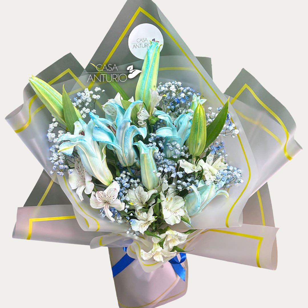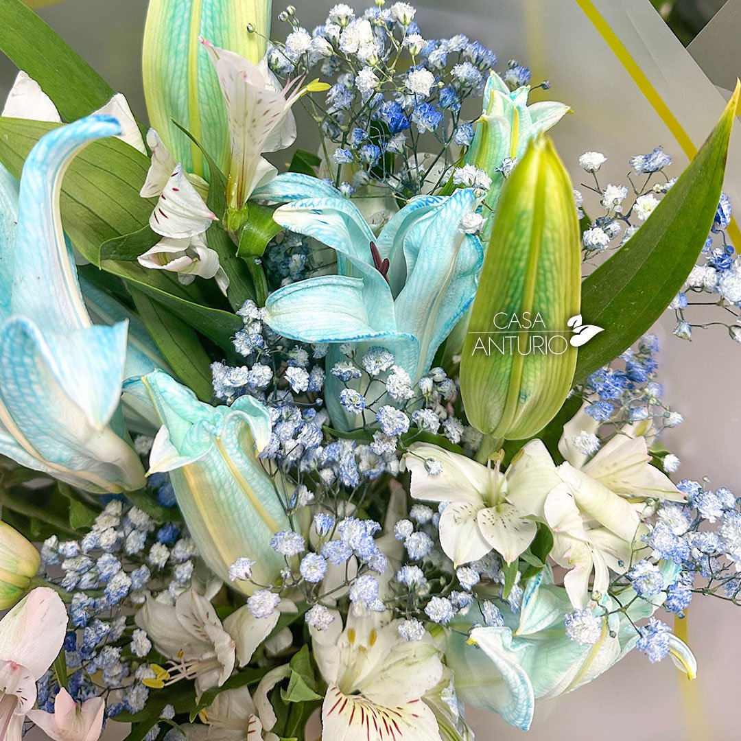 Nota importante: En Casa Anturio trabajamos con flores 100% naturales, cuidadosamente seleccionadas para garantizar frescura y calidad en cada arreglo. Debido a su origen natural, es posible que presenten ligeras variaciones en color, tamaño o forma. Por lo tanto, el producto final puede diferir sutilmente de la imagen de referencia. Sin embargo, te aseguramos que siempre mantendremos la armonía, el estilo y la belleza que caracterizan a nuestros diseños florales.