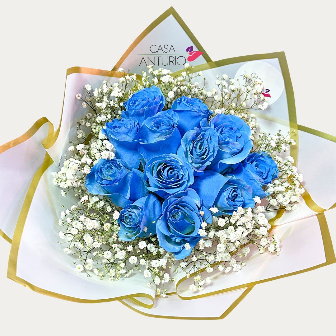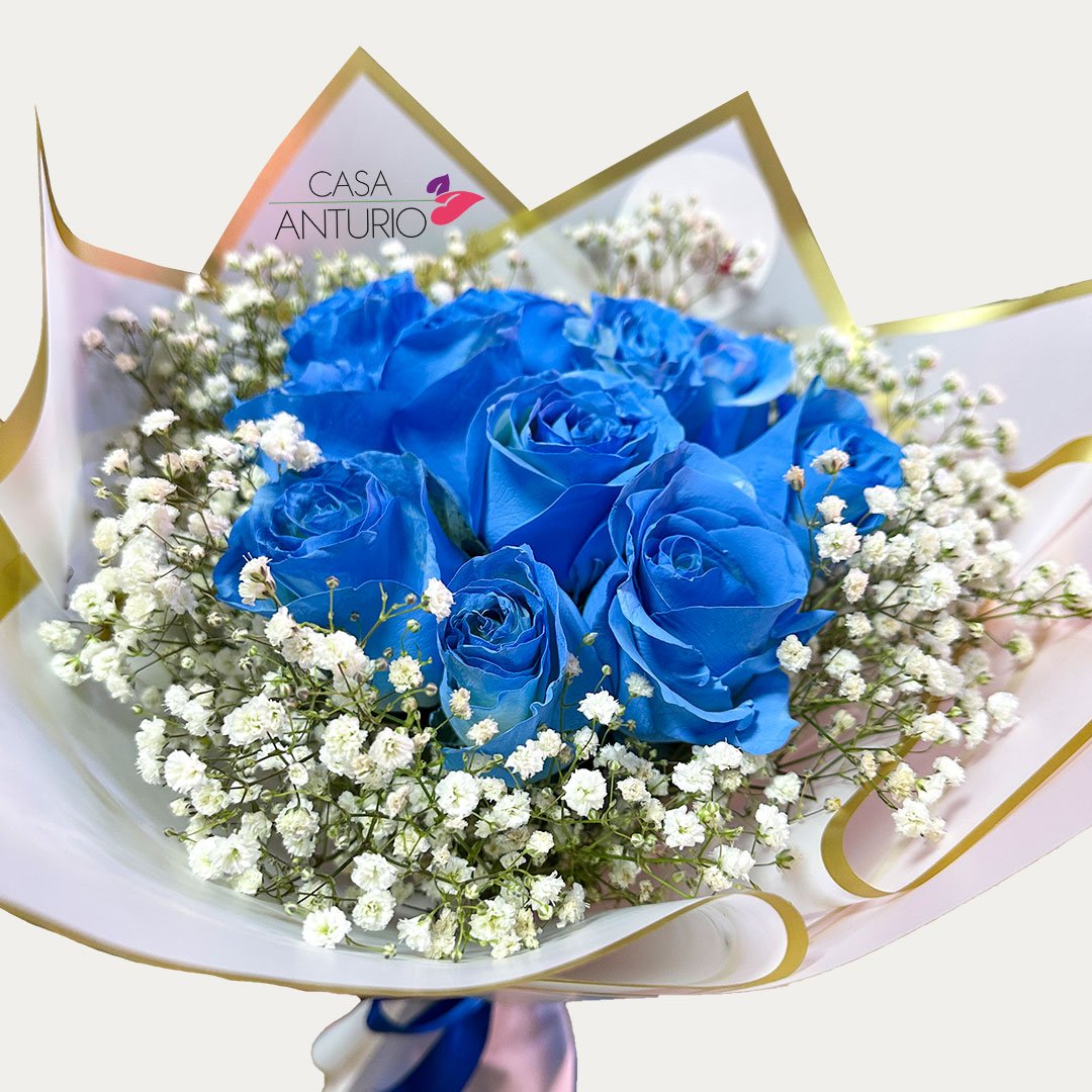 Bouquet de Rosas Azules y Perla