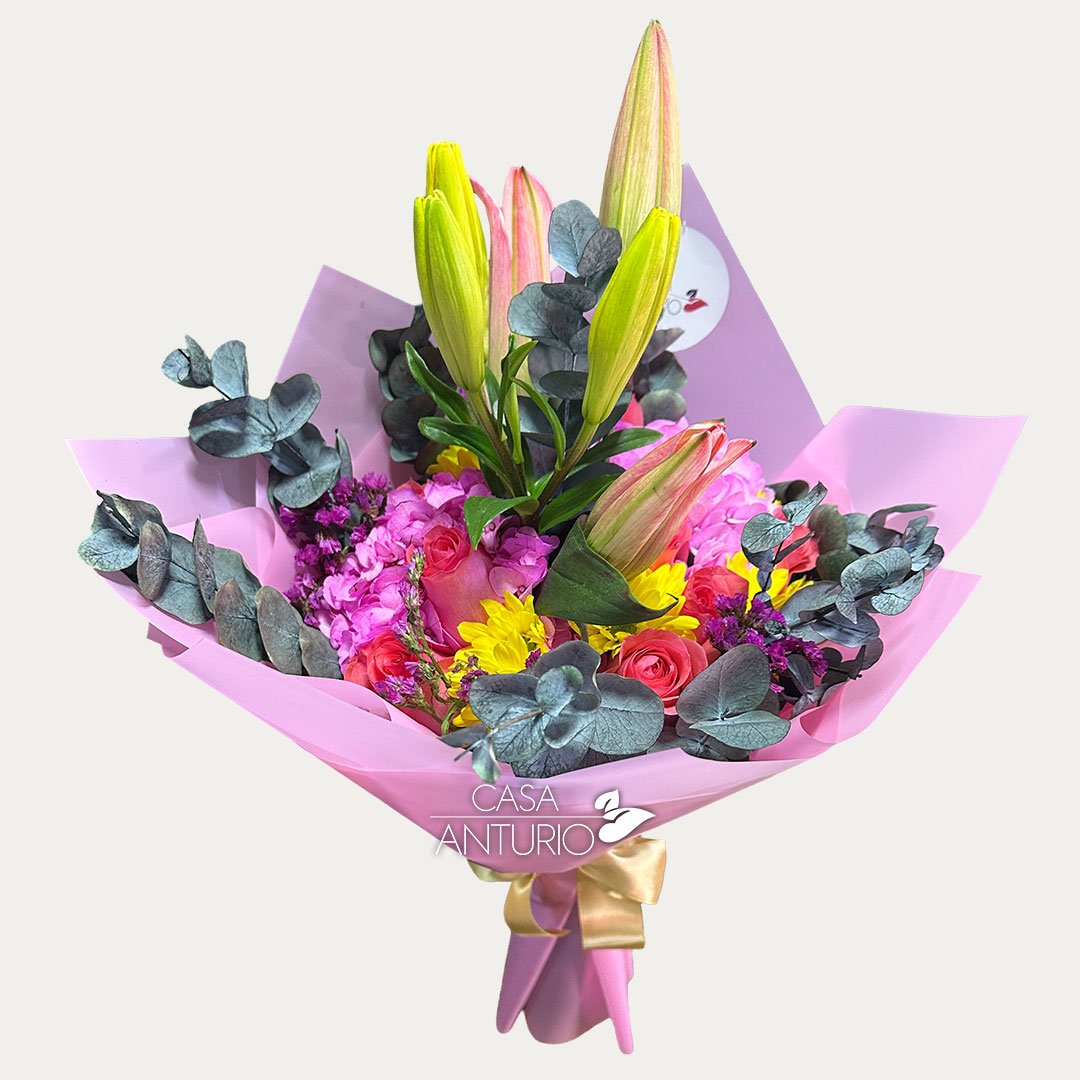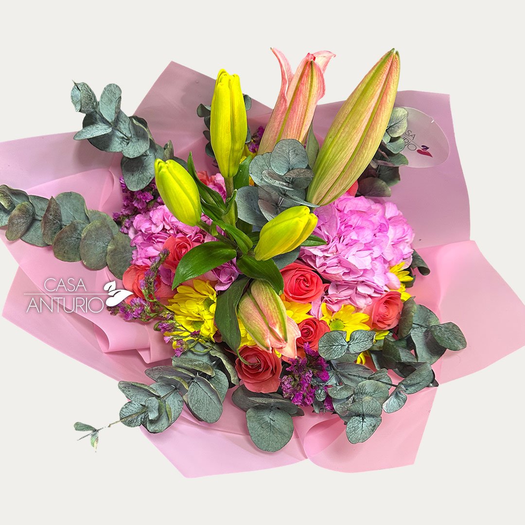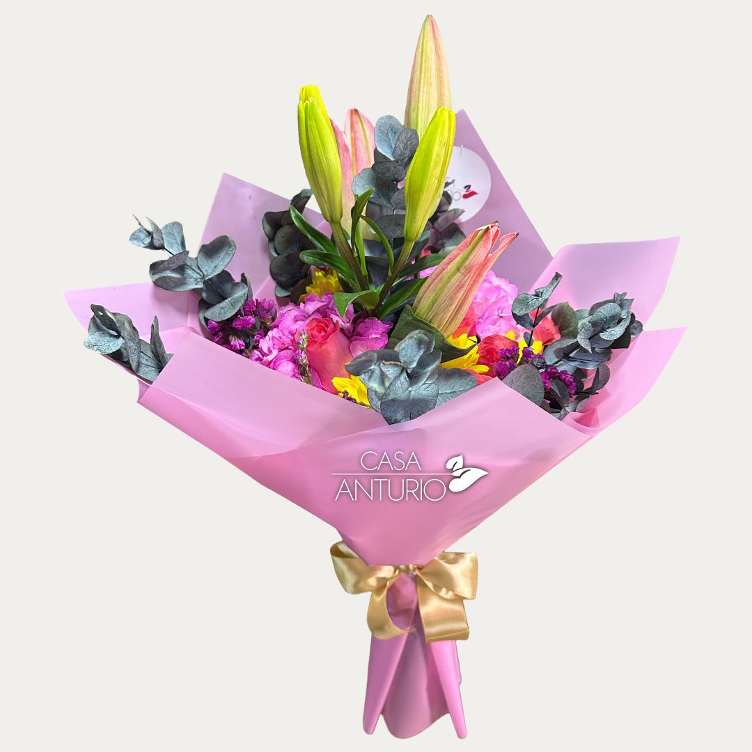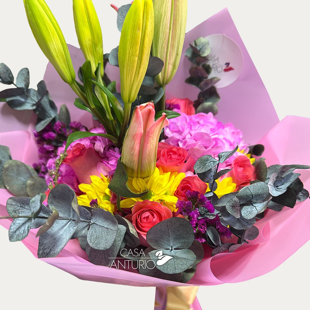 Nota importante: En Casa Anturio trabajamos con flores 100% naturales, cuidadosamente seleccionadas para garantizar frescura y calidad en cada arreglo. Debido a su origen natural, es posible que presenten ligeras variaciones en color, tamaño o forma. Por lo tanto, el producto final puede diferir sutilmente de la imagen de referencia. Sin embargo, te aseguramos que siempre mantendremos la armonía, el estilo y la belleza que caracterizan a nuestros diseños florales.