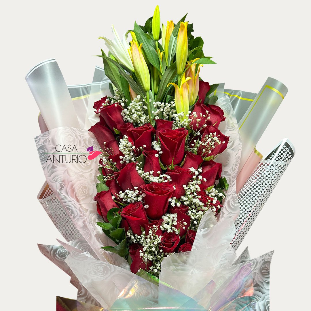 Bouquet de Rosas, Lirios y Perla