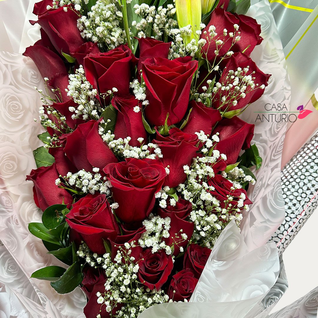 Nota importante: En Casa Anturio trabajamos con flores 100% naturales, cuidadosamente seleccionadas para garantizar frescura y calidad en cada arreglo. Debido a su origen natural, es posible que presenten ligeras variaciones en color, tamaño o forma. Por lo tanto, el producto final puede diferir sutilmente de la imagen de referencia. Sin embargo, te aseguramos que siempre mantendremos la armonía, el estilo y la belleza que caracterizan a nuestros diseños florales.