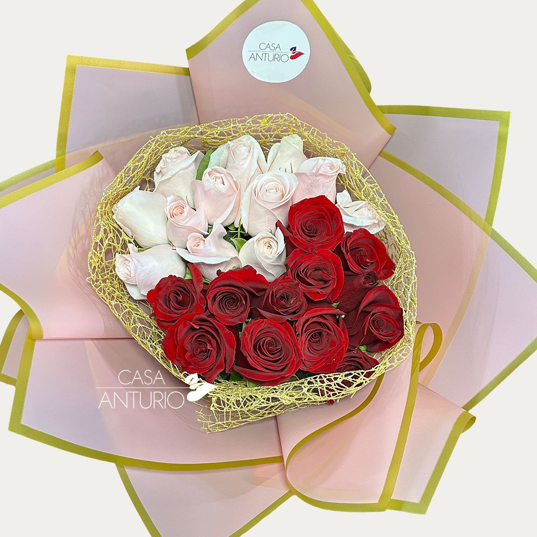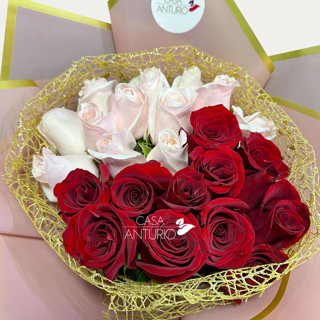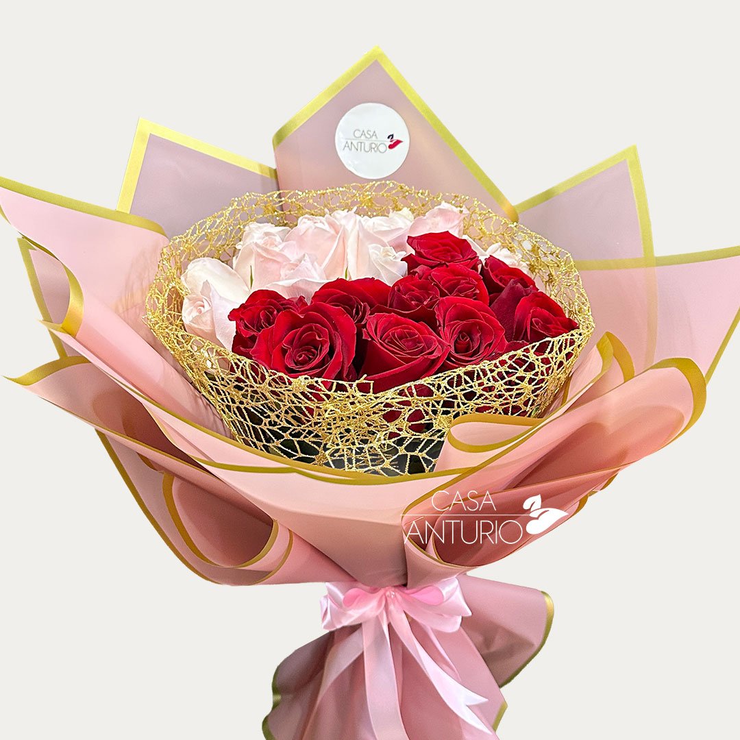 Bouquet de Rosas Rosadas y Rojas
