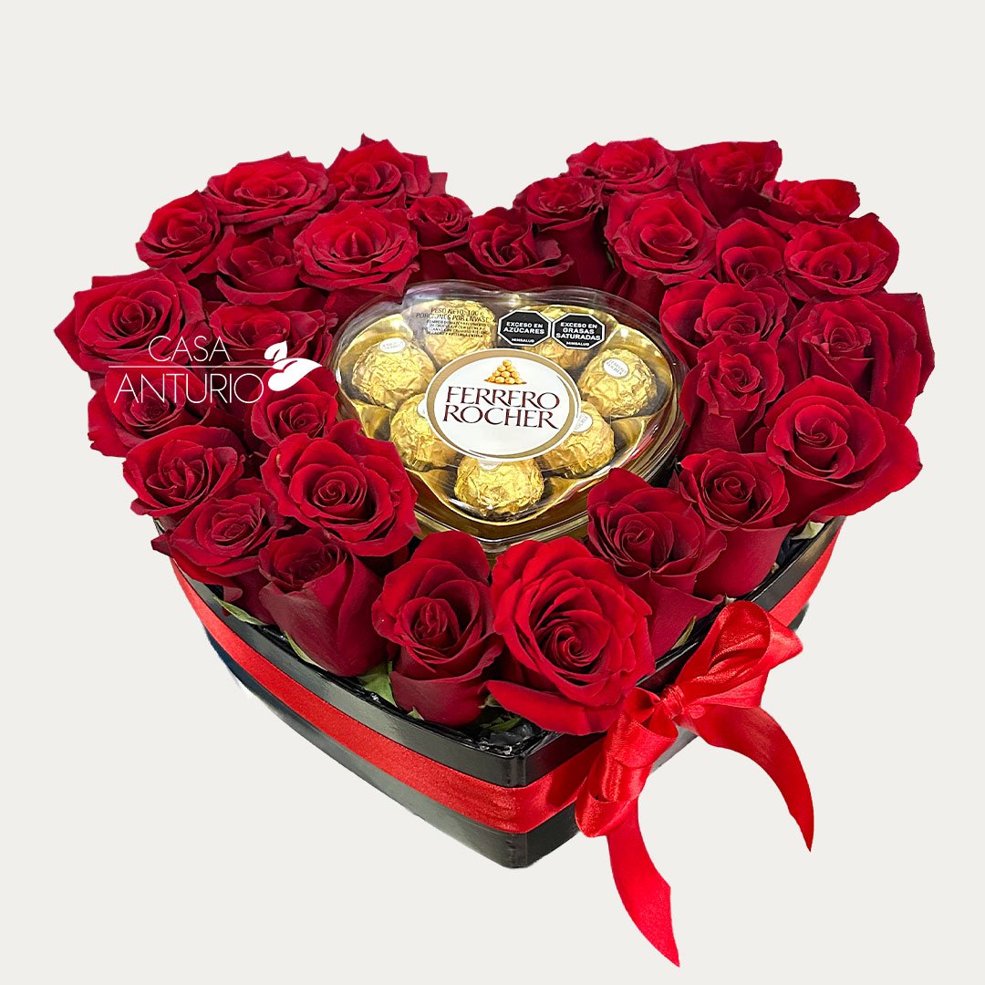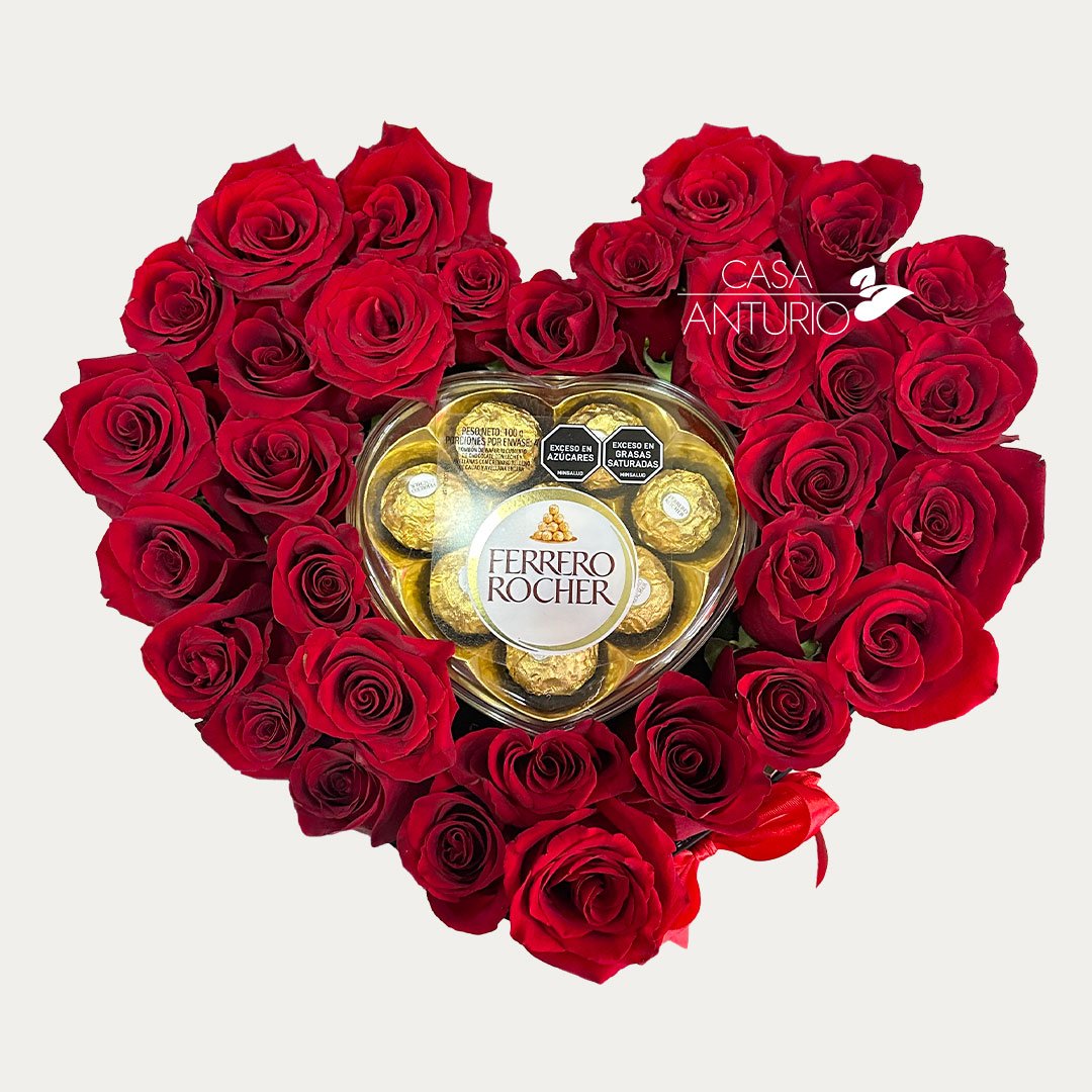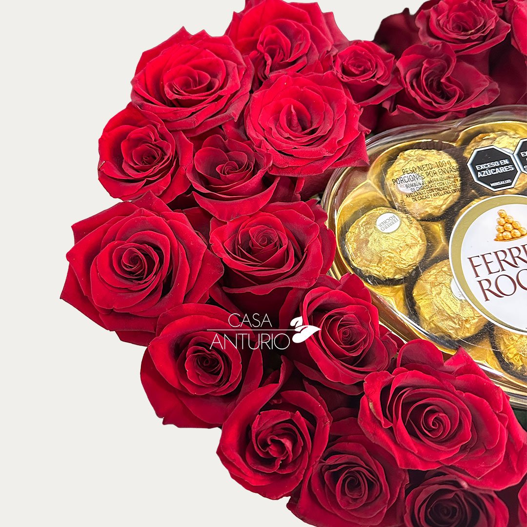 Caja Corazón Rosas y Ferrero