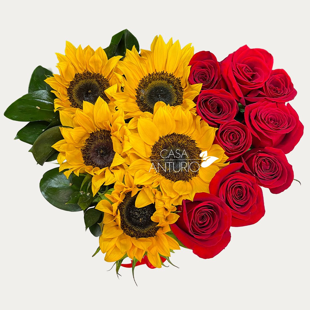 Nota importante: En Casa Anturio trabajamos con flores 100% naturales, cuidadosamente seleccionadas para garantizar frescura y calidad en cada arreglo. Debido a su origen natural, es posible que presenten ligeras variaciones en color, tamaño o forma. Por lo tanto, el producto final puede diferir sutilmente de la imagen de referencia. Sin embargo, te aseguramos que siempre mantendremos la armonía, el estilo y la belleza que caracterizan a nuestros diseños florales.